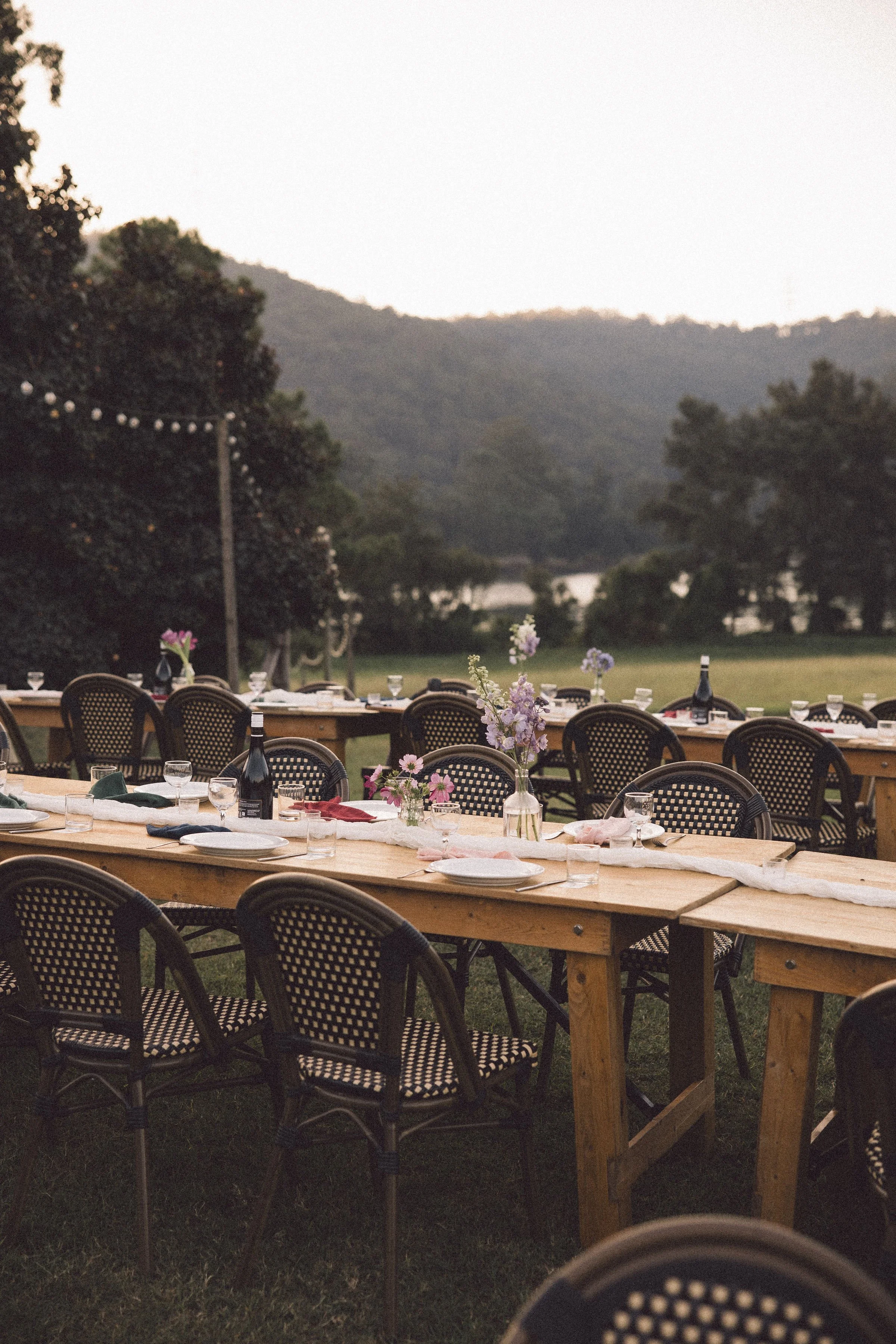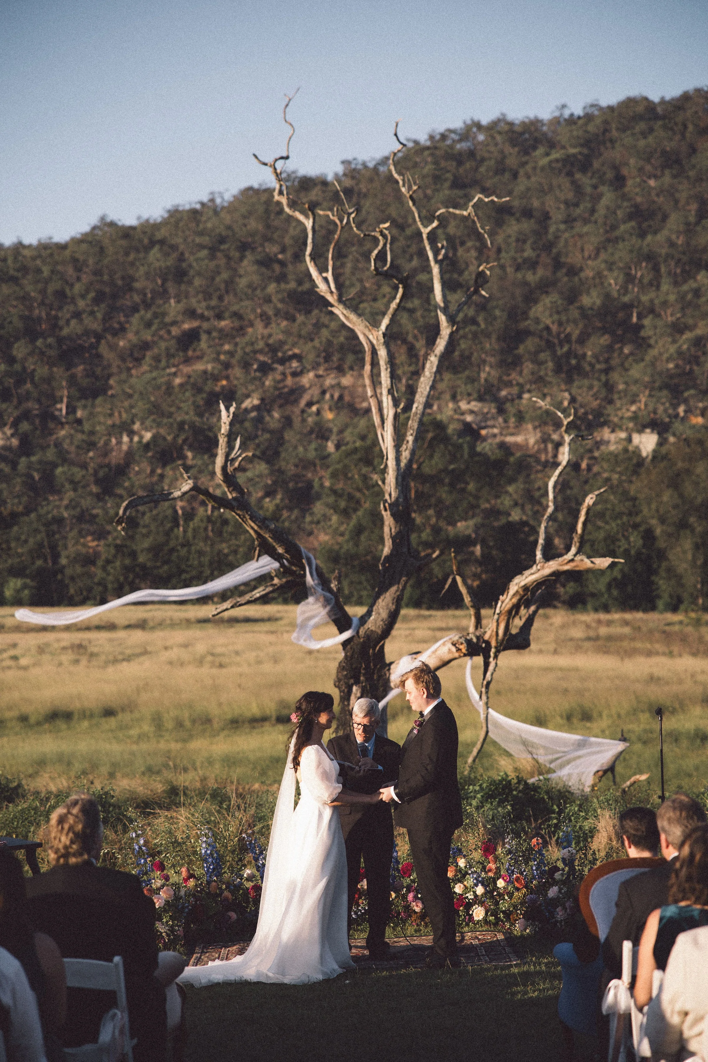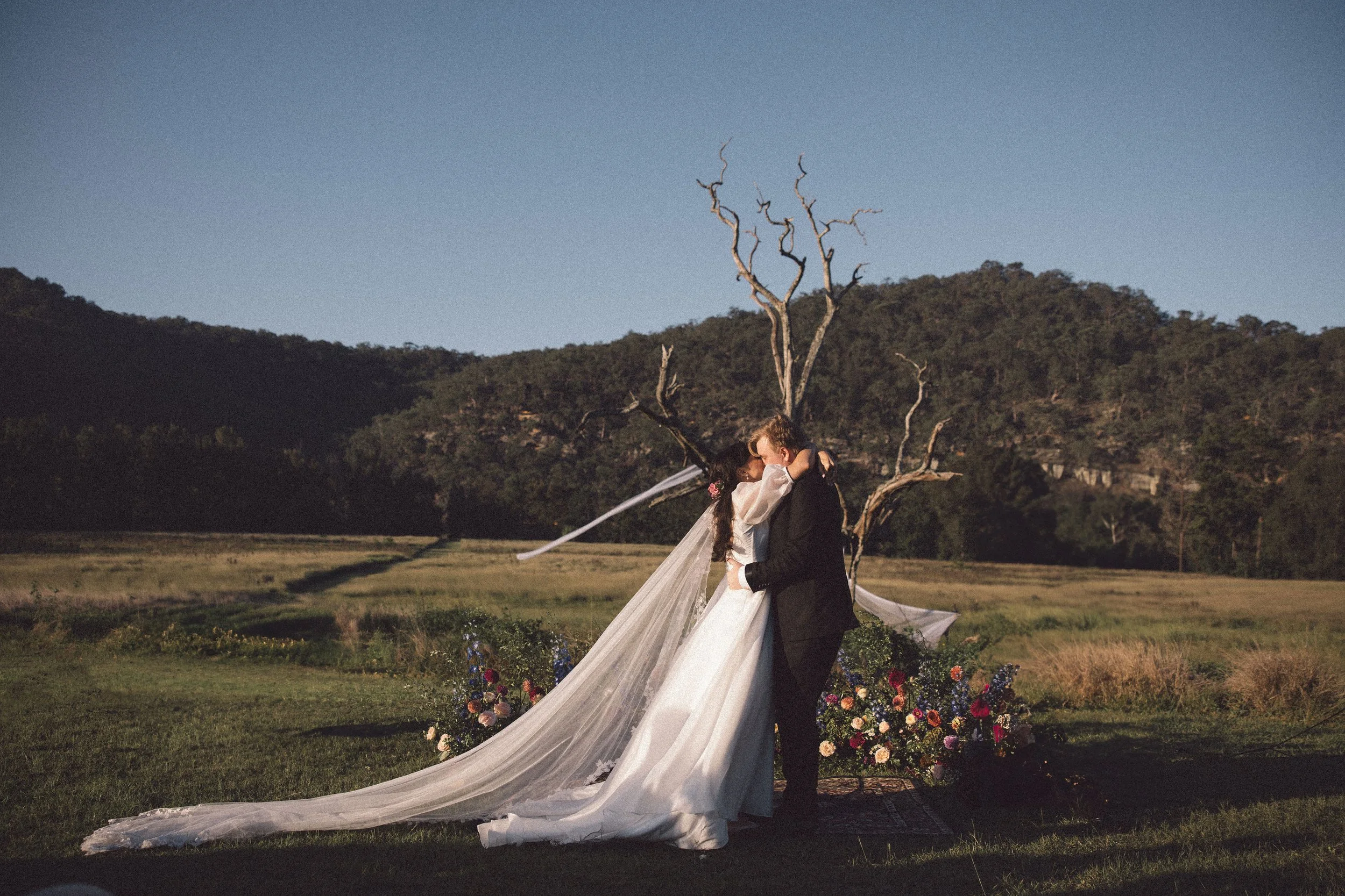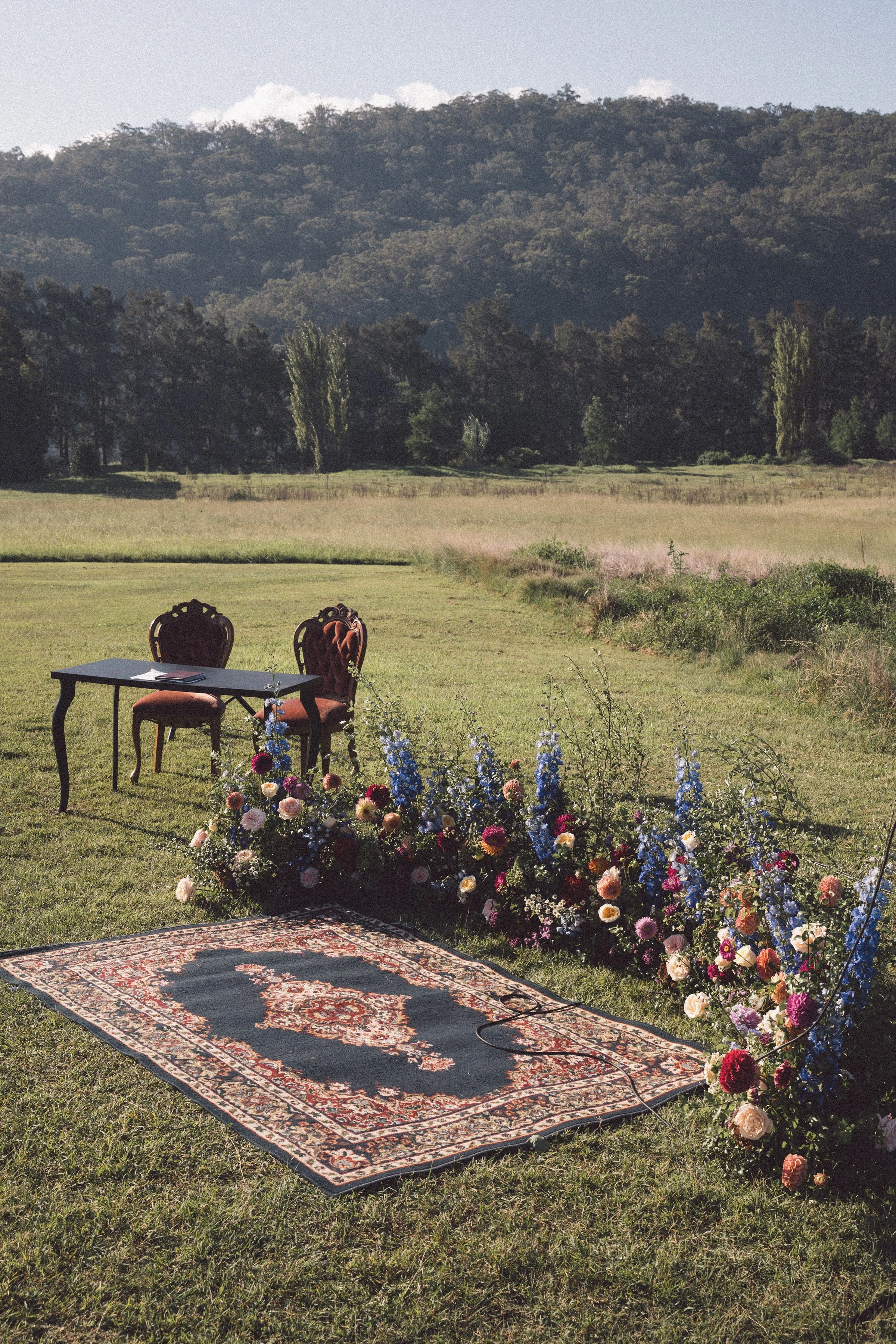 Annabelle and Jeremy had a specific vision in mind - everything was eclectic, candid and vintage. They opted for a floral nest as the ceremony feature to keep the main focus on the beautiful surroundings.